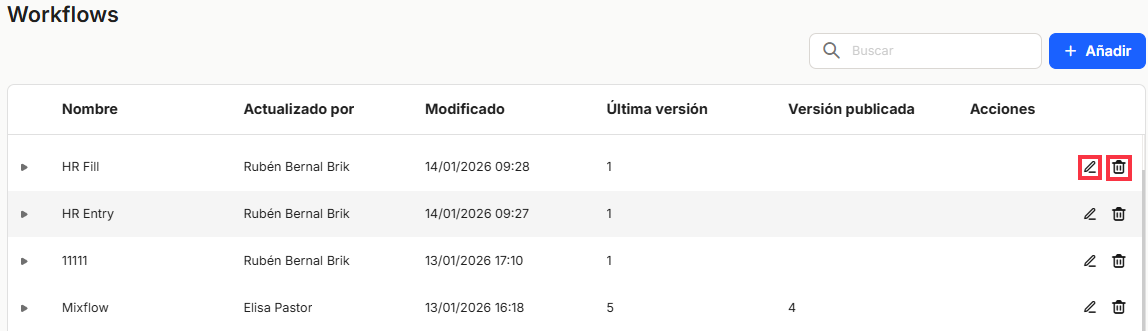 Una vez que hemos dado de alta o generado el workflow correspondiente, ya podemos, o bien Editar el flujo pulsando en el icono del lápiz